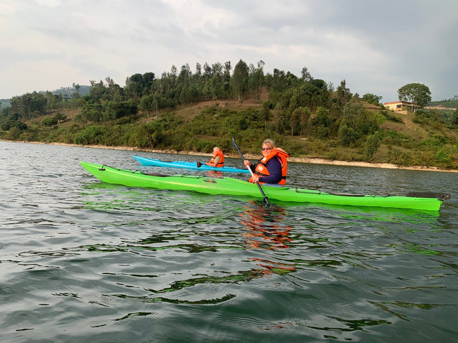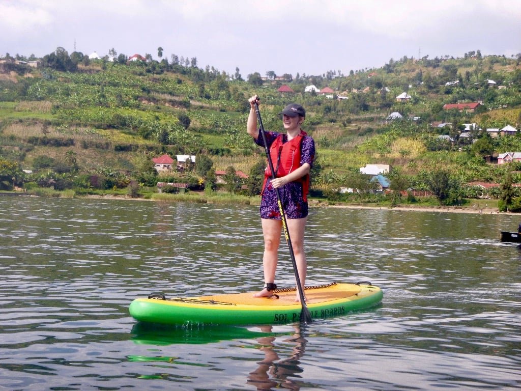 Enjoy paddling on the calm, clean blue water of Lake Kivu.